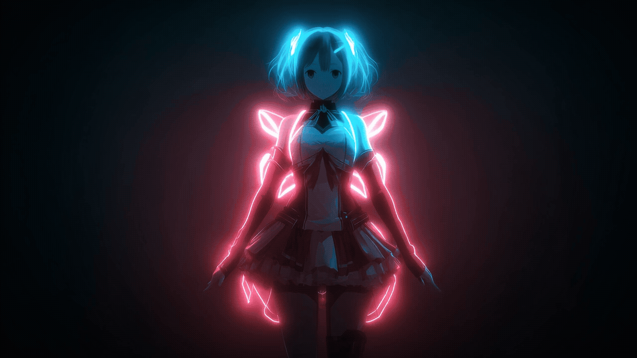 A radiant futuristic anime figure stands enveloped in glowing cyan energy, with luminous digital wings extending from her back. Her sleek outfit, soft blue aura, and calm stance create a powerful balance between innocence and advanced technology. This artwork evokes themes of protection, awakening, and cyber-fantasy evolution-perfect for wallpapers, album art, game visuals, and futuristic storytelling projects.
