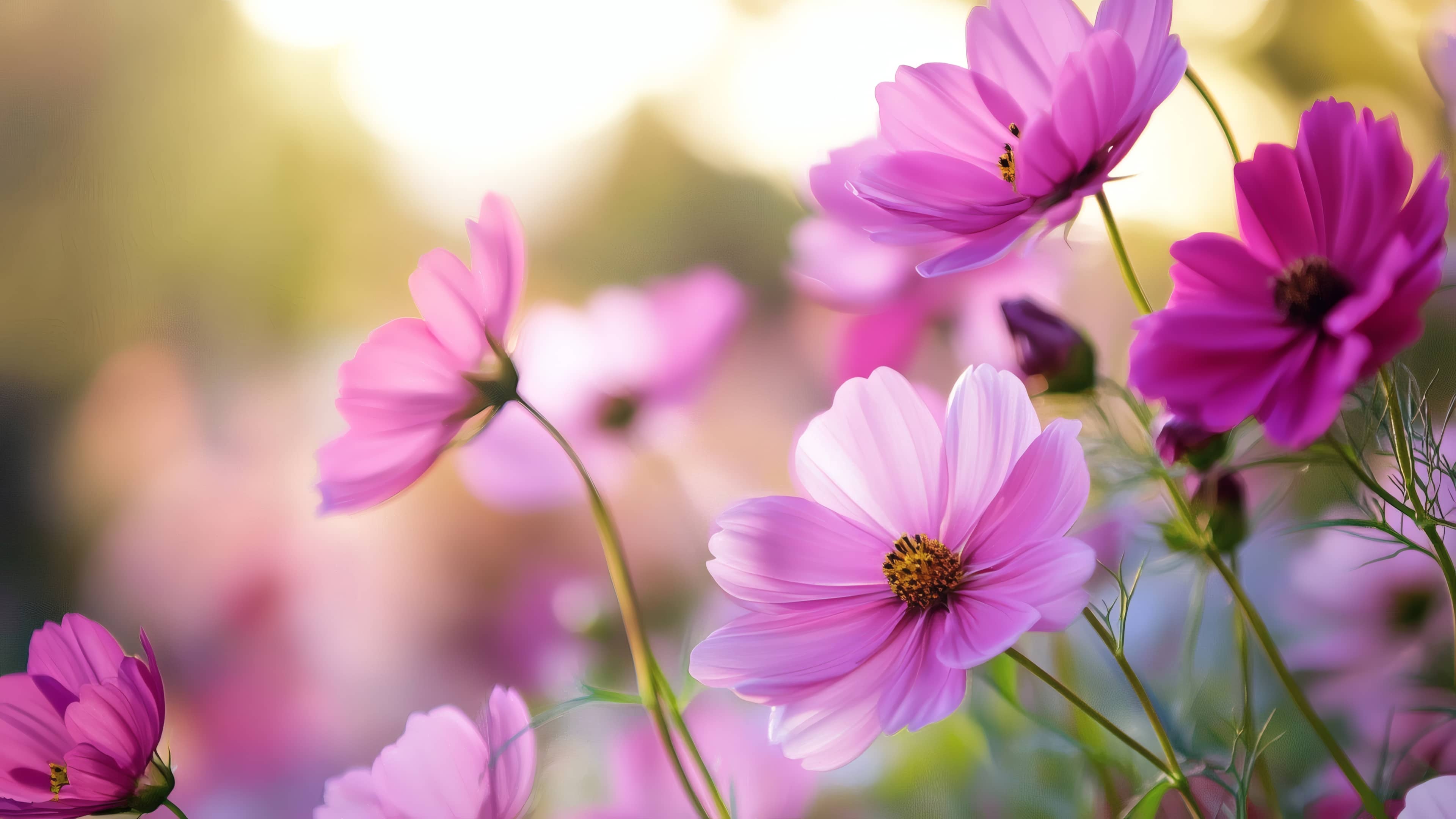 Blooming Pink Cosmos Flowers in Soft Sunlight