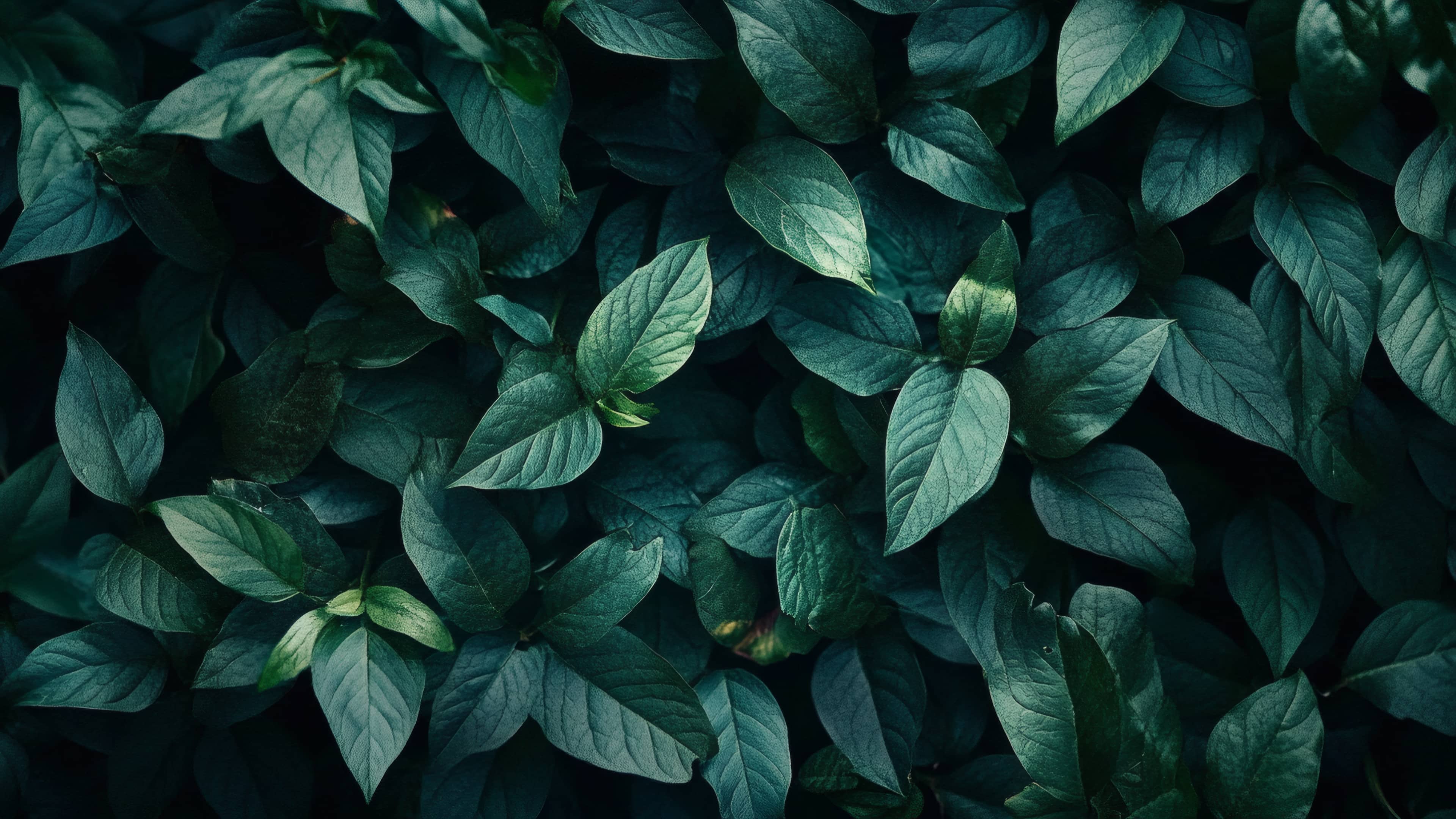 A close-up view of dense, overlapping green leaves, showcasing their rich textures and deep, natural tones. The intricate patterns of light and shadow create a tranquil, earthy atmosphere, perfect for botanical designs, nature photography, and organic-themed visuals.