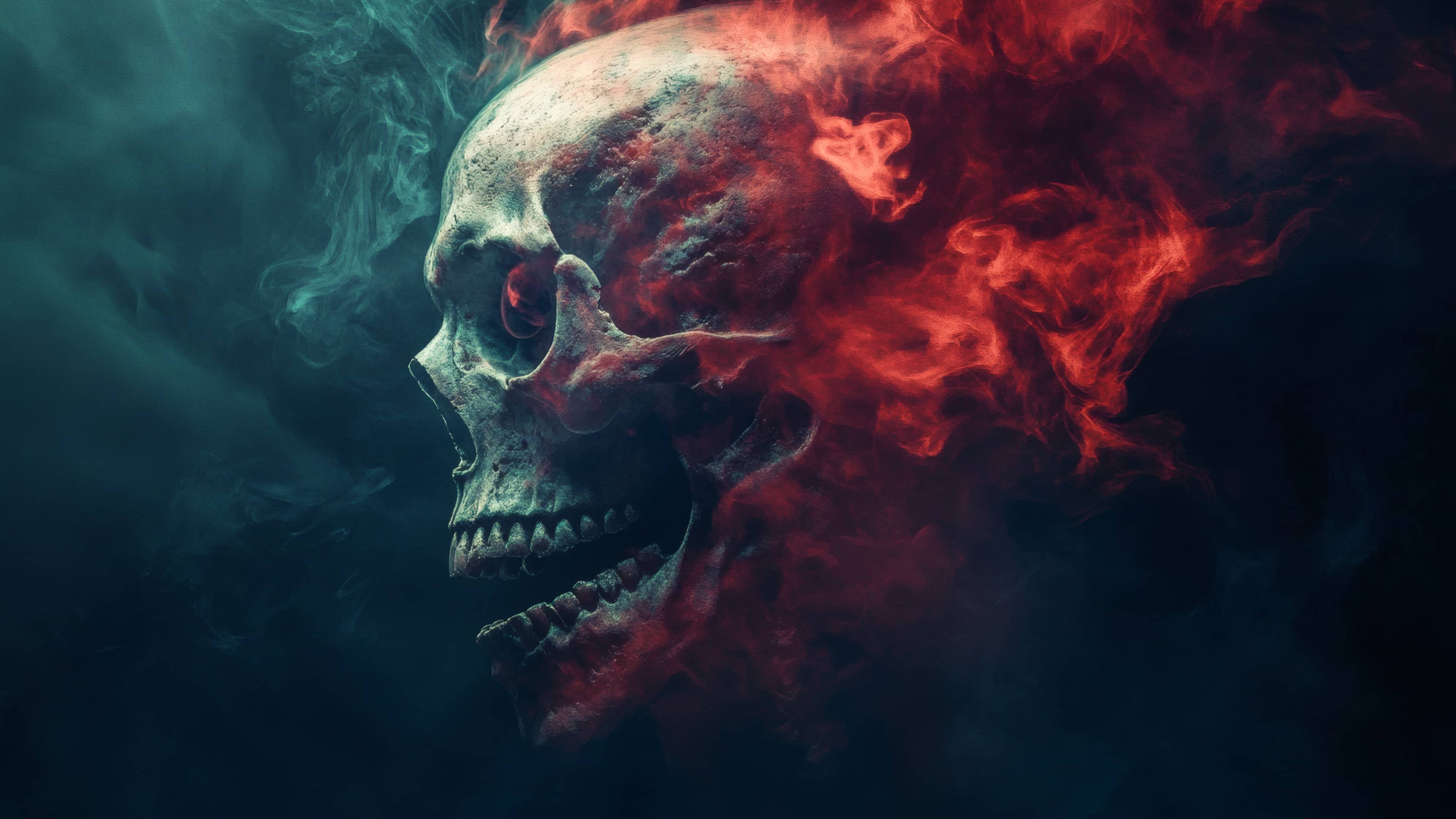 Fiery Skull Engulfed in Red Smoke and Darkness