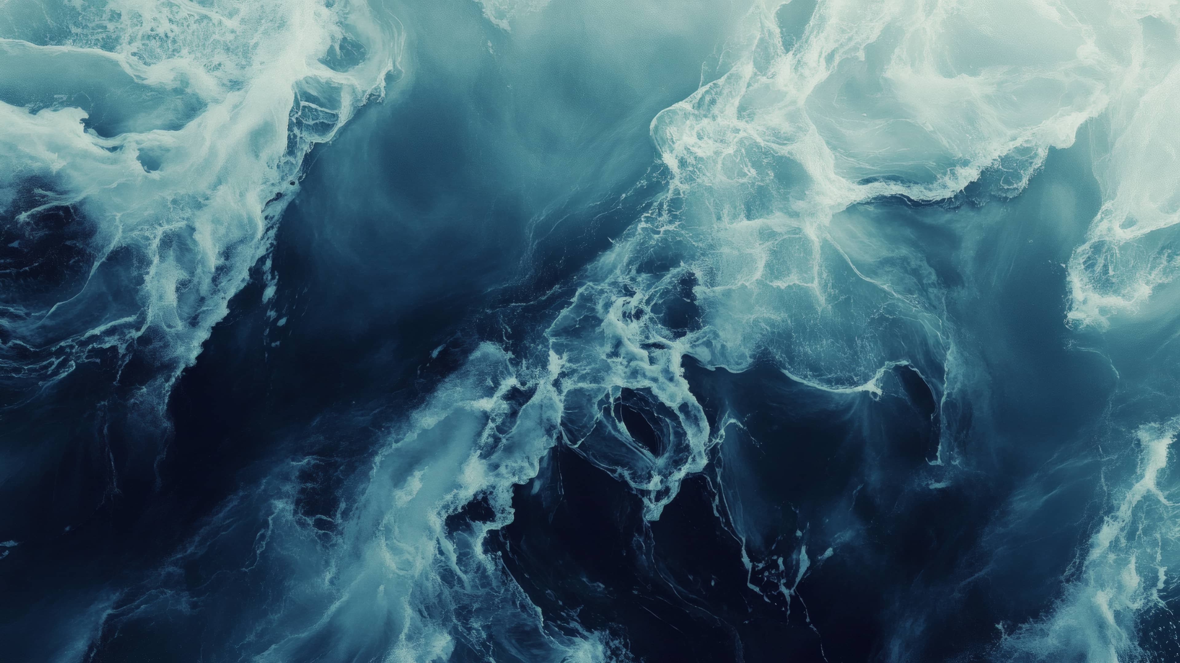 A captivating abstract image showcasing swirling waves of deep blue and foamy white, reminiscent of turbulent ocean waters or ethereal clouds. The intricate patterns evoke a sense of depth and mystery, perfect for marine or atmospheric-themed visuals. The texture creates a dynamic, fluid movement, blending nature's chaos with artistic serenity.