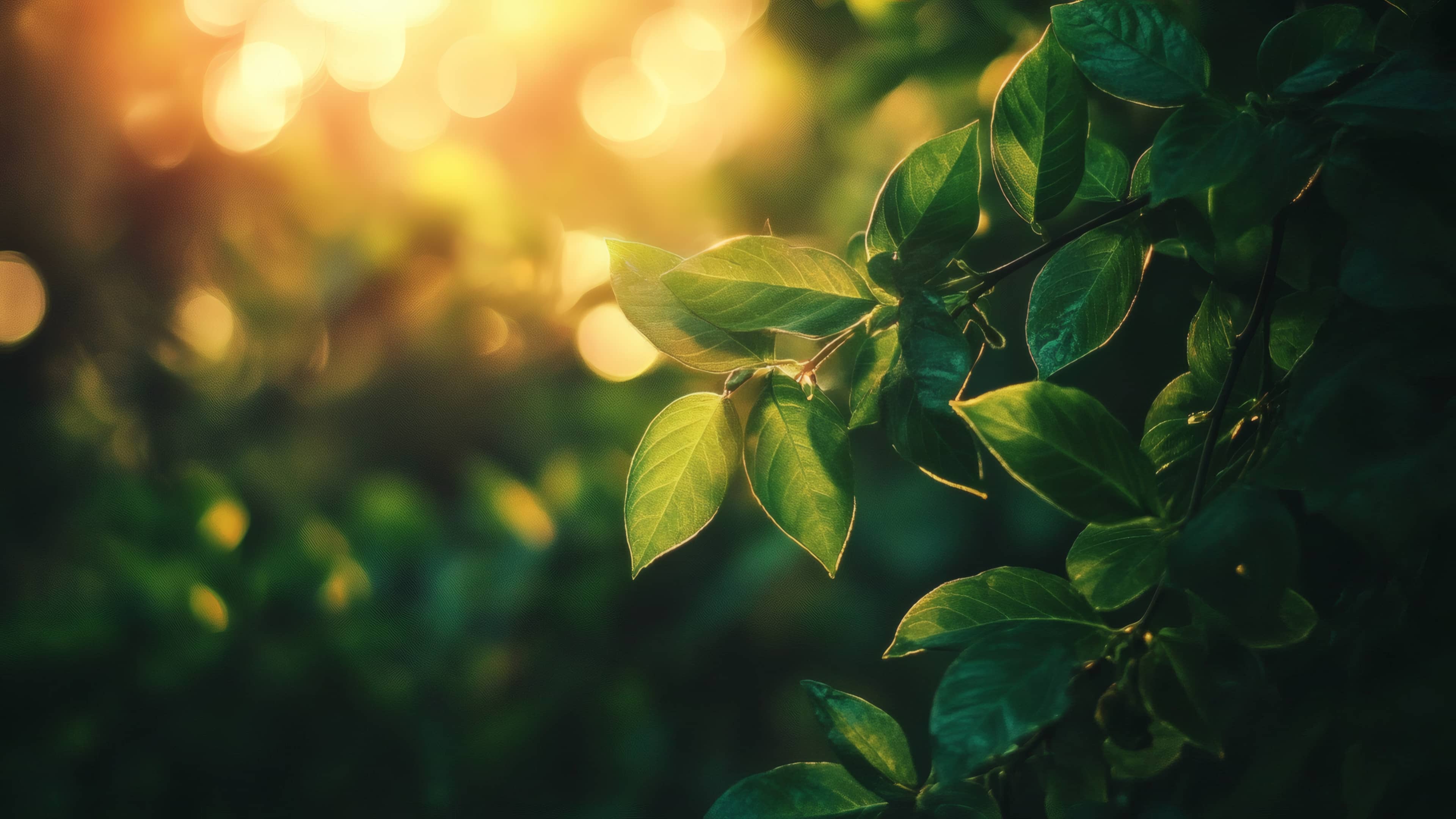 Sun-Kissed Green Leaves with Warm Bokeh Background