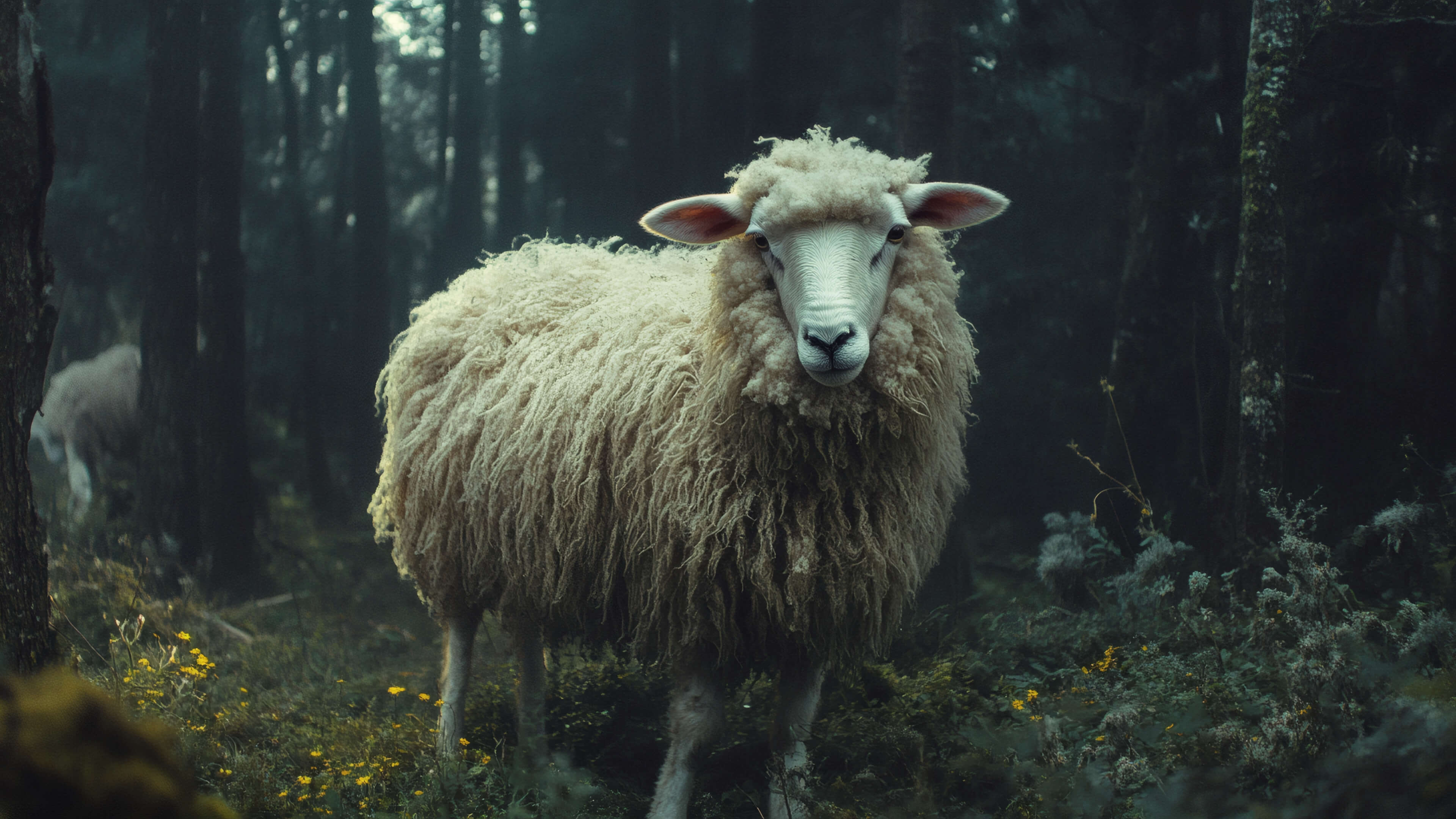 Woolly Sheep in Enchanted Forest: A Nature's Charm